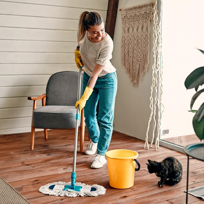 • Bathrooms (scrubbing the bathroom floors, descaling showers and bathtubs, sanitising toilets)